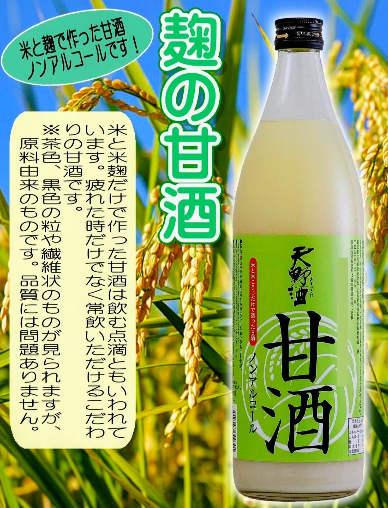 堺市美原産古代米使用の米と麹のノンアルコール甘酒。